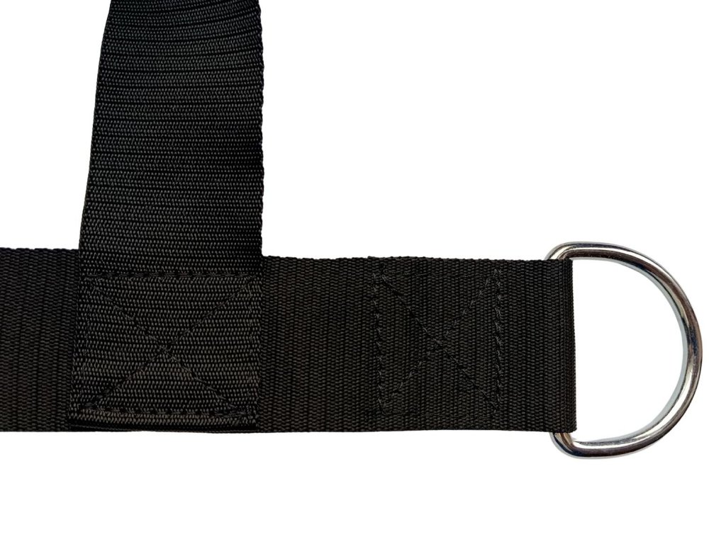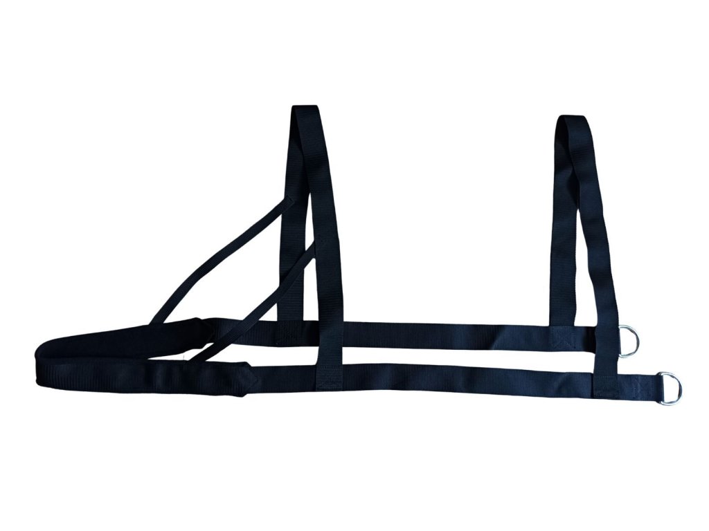 Základní postroj je ukončen kovovými D, do kterých můžete připnout vlastní zařízení nebo přiobjednat popruh s držátkem pro taženou osobu.